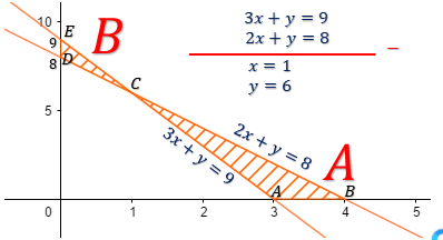 Di bawah ini adalah daerah penyelesaian dari pertidaksamaan linear dua variabel 3x + 4y ≤ 24 dan 3x + 4y ≥ 24.