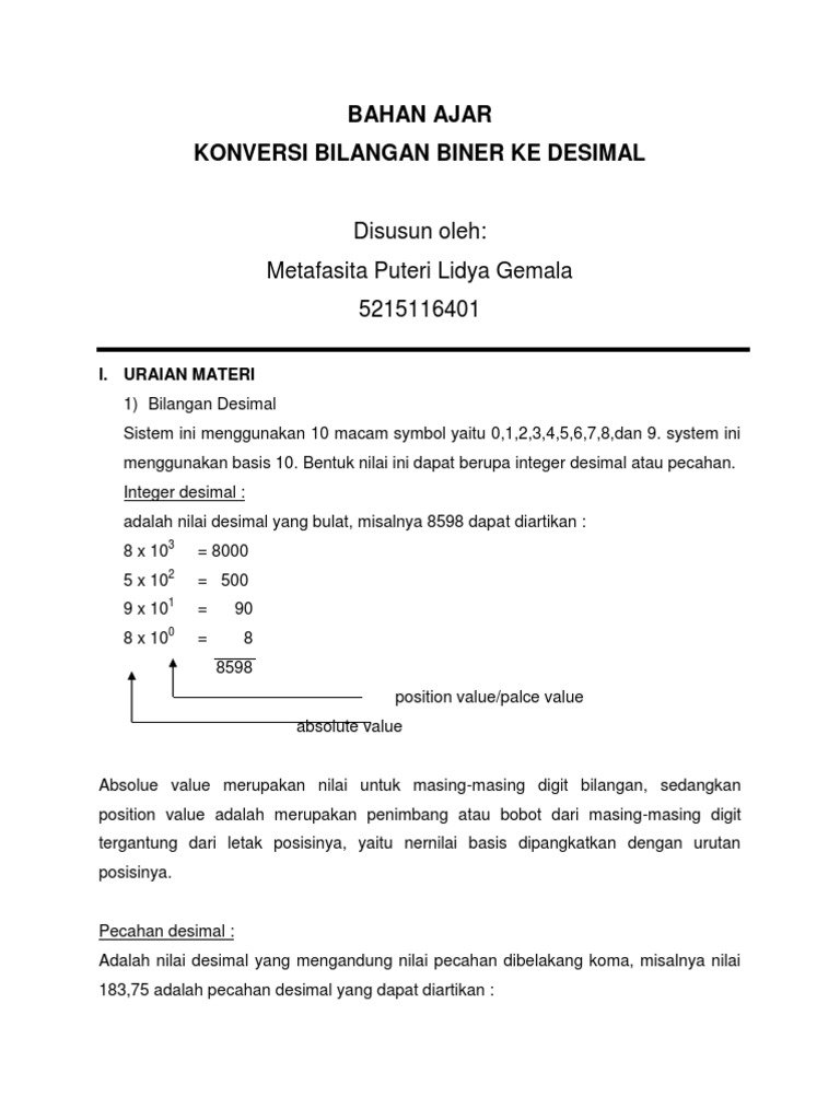 Pics. Pecahan desimal dan bilangan desimal. Absolut value merupakan nilai muilak dari bilangan biner adalah bilangan yang berbasis 2 yang hanya mempunyai 2 digit yaitu.