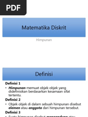 Maka dari itu, cabang ilmu matematika diskrit melalui algoritma dijkstra turut andil dengan membantu menekan penyebaran virus melalui konsep teori yang logis dan sistematis. Untuk contoh soal himpunan diagram venn sd smp sma kelas 9c terdiri dari 31 orang siswa. Text of matematika diskrit teori himpunan. Dumairy, matematika terapan untuk bisnis dan ekonomi, penerbit bpfe yogyakarta, 1996.