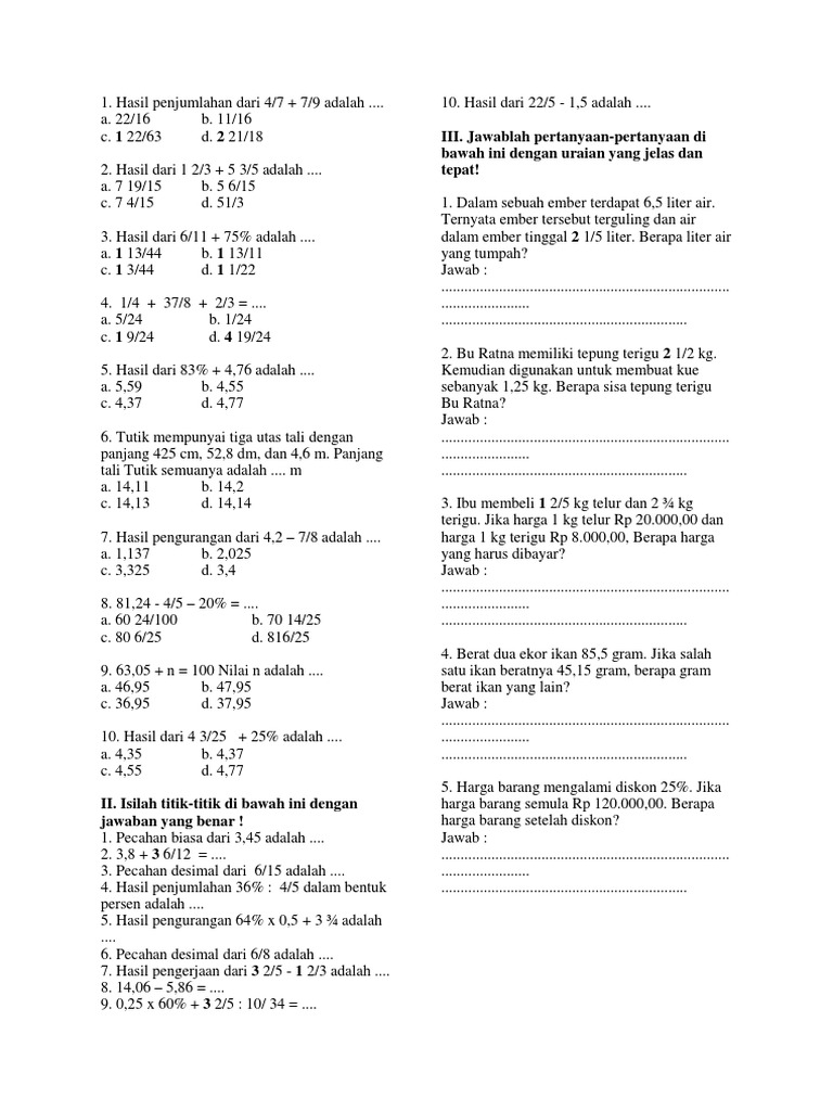 Soal penjumlahan pecahan berbeda penyebut kelas 5 sd disertai pembahasannya. Mengapa jawaban nobita ketika menjawab 2 + (2 x 5) = 12 adalah salah? Download soal sosiologi kelas 12 semester 2 k13.