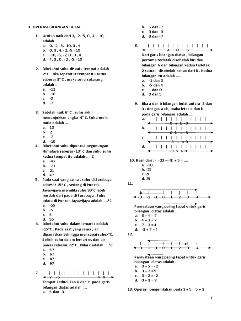 Pengertian bilangan bulat adalah himpunan yang terdiri dari bilangan bulat negatif, nol dan positif. Teruslah untuk bersama kami dalam. Rana latihan setiap 3 hari sekali, sedangkan bayu setiap 2 hari sekali dan yoga demikianlah ulasan dari artikel kali ini tentang contoh soal operasi bilangan bulat kelas vi sd/mi. A=6584678656 dan b = 6473263749.