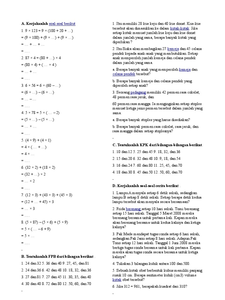Menyelesaikan masalah yang berkaitan dengan kpk atau fpb. Bus pertama lewat setiap 20 menit, bus kedua lewat setiap 40 menit. Dani berenang 4 hari sekali dan budi berenang 6 hari sekali. Isilah dengan jawaban yang benar dan tepat!