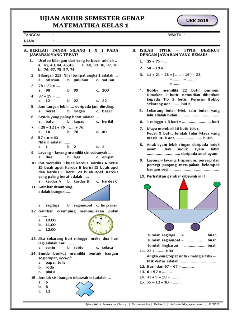 Contoh Soal Matematika Kelas 1 Sd Semester 1 2020 from rumus.co.id