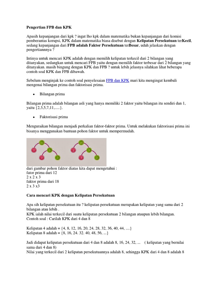 Cara untuk mencari faktor prima dari suatu bilangan dapat dilakukan dengan menggunakan pohon faktor. Bilangan adalah bilangan yang hanya memiliki dua faktor, yaitu 1 dan bilangan itu sendiri. Bilangan prima adalah bilangan asli yang bernilai lebih dari 1 dan mempunyai 2 faktor pembagi yaitu 1 dan bilangan itu sendiri. Bilangan prima adalah bilangan asli yang lebih besar dari satu dan mempunyai tepat dua faktor, yaitu bilangan satu dan bilangan itu sendiri.