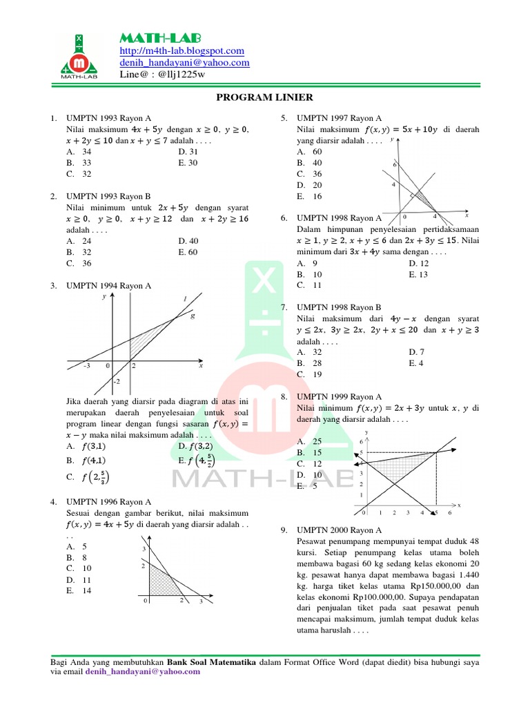 Menentukan sistem pertidaksamaan dari daerah himpunan penyelesaian.
