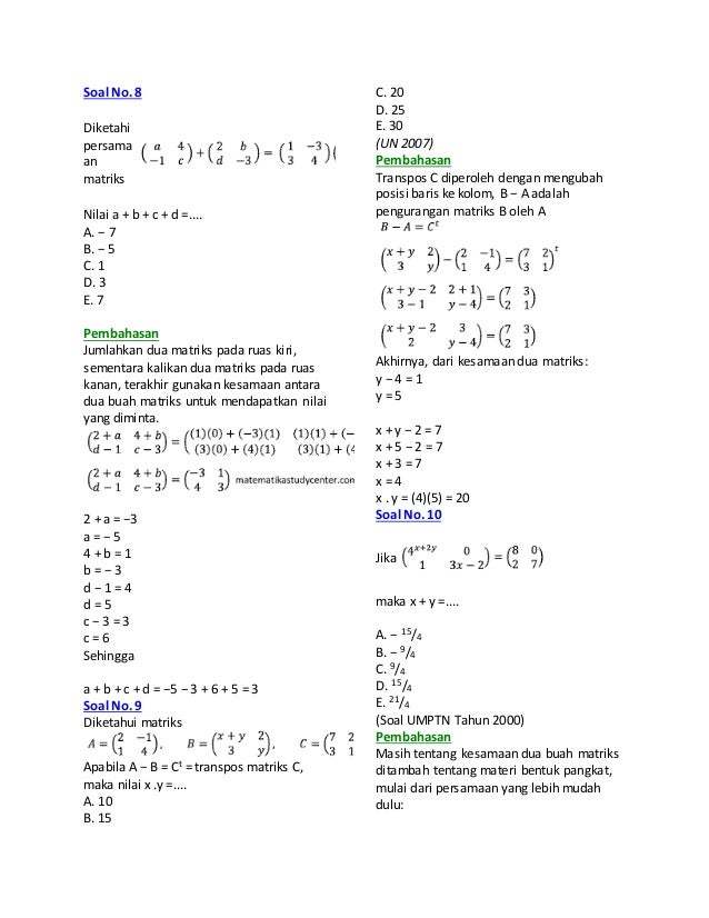 Download Diketahui Matriks C 2X 4 5Z Images. Jika dijumlahkan dengan matriks yang berordo sama yang memiliki elemen 7 dan 0 maka diperoleh suatu matriks berordo 2 x 15. Ukuran matriks disebut dengan ordo matriks.