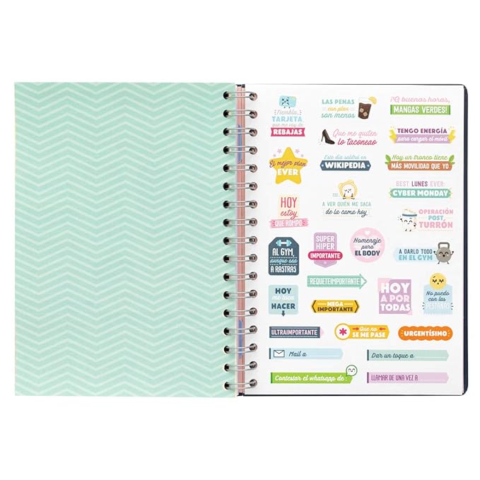 Una agenda con anillas y un acabado excepcional que cuenta con refuerzos en las esquinas y tapa dura.