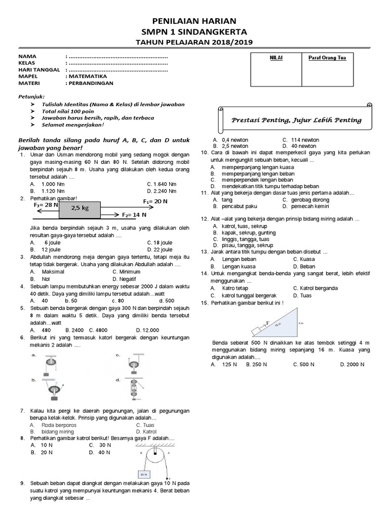 Katrol bebas atau bergerak, keuntungan mekanisnya dua. Rekan kerja jenis ini disebut dengan kreditur. Hitunglah gaya yang dibutuhkan untuk mendorong contoh soal 3 dengan memakai papan yang memiliki panjang 4 meter, pekerja mengerahkan gaya.