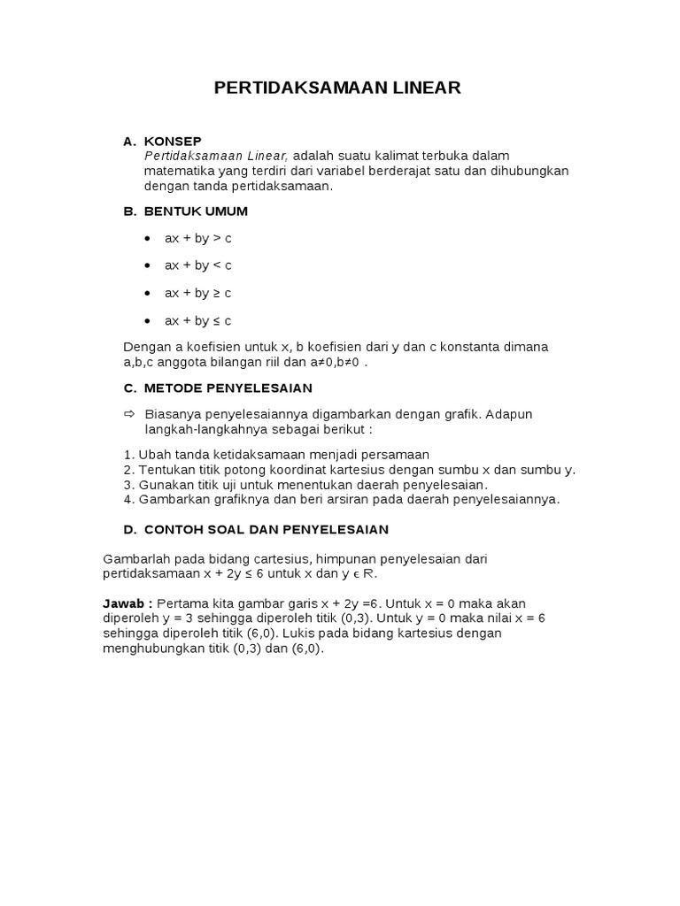 Tentukan solusi pertidaksamaan linear berikut ini untuk nilai variabel merupakan bilangan bulat. Untuk lebih memahami daerah himpunan dari penyelesaian pertidaksamaan linear dua peubah. Dengan demikian, himpunan penyelesaian dari sistem pertidaksamaan x ≥ 0, y ≥ 0, x ≤ 3, dan x + y ≤ 5 dengan x, y ϵ r adalah daerah segi empat oabc yang diarsir, seperti terlihat pada.