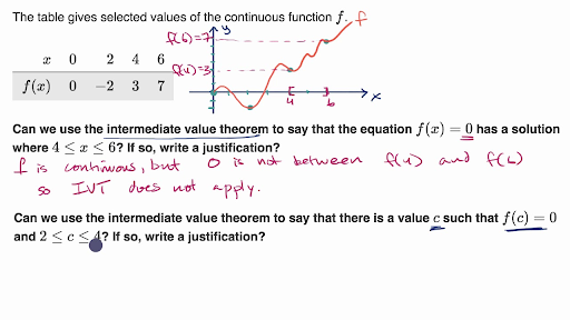 Suppose f is a continuous function on a, b. With intermediate value theorems, you aren't looking for a certain solution (a number), you are just. I work out examples because i know this is what the student wants to see.
