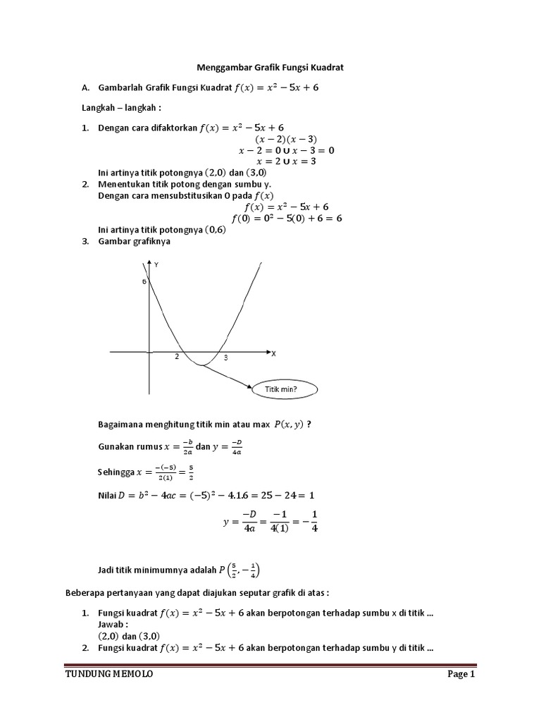 Pics. Cara mencari titik potong x. Video tutorial (imath tutorial) ini memberikan materi tentang cara menentukan koordinat titik balik (puncak) dari grafik fungsi kuadrat.