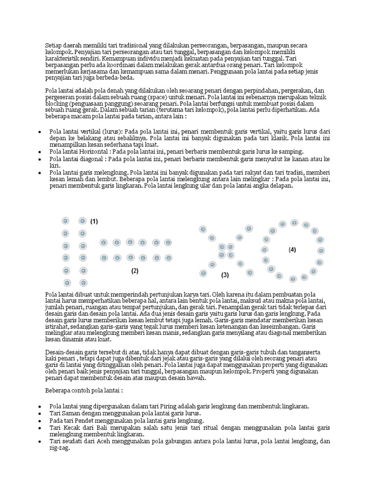 Pola lantai vertikal (lurus) ciri pola lantai vertikal (lurus) adalah penari membentuk garis vertikal, yaitu garis lurus dari depan ke belakang atau sebaliknya. Pola pembentukan frasa secara umum adalah Pola lantai ini sebenarnya merupakan teknik blocking (penguasaan panggung) seoarang penari. Anda bisa melihat pada tanda garis panah berwarna merah.